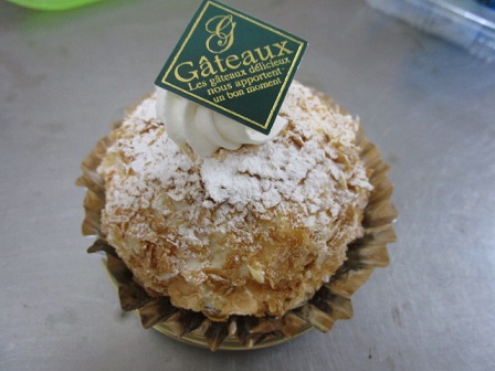 パイ生地にアマンド生地を入れて焼き、バナナソテーを置き、バナナムースを絞りました