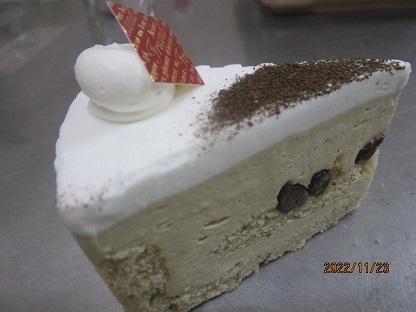 紅茶の生地に紅茶のムース、上に紅茶がやってを流してあります。